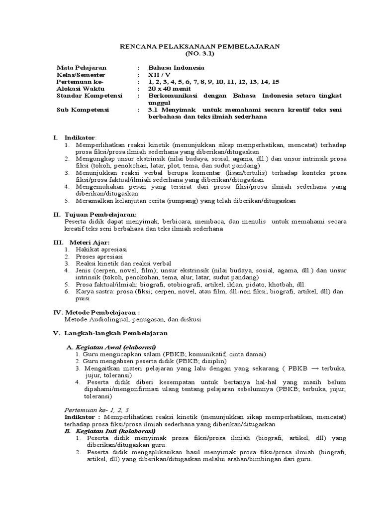 Rpp Bahasa Indonesia Smk Kelas Xii